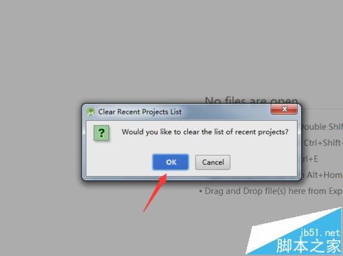 5、会弹出一个为clear recent project list的窗口,确认进行删除软件历史记录信息,直接进行点击“OK”.