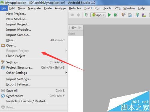 3、弹出了的下拉的菜单中进行选择“Reopen Project”的选项。