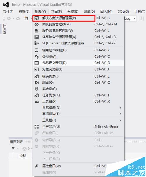 5、接着单击菜单栏——视图——解决方案资源管理器