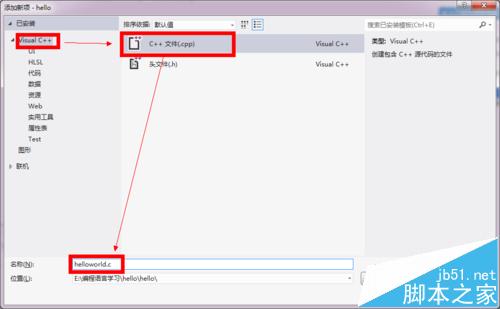 8、接着选择visual c++ 后选择”c++文件“并命名为holloworld.c