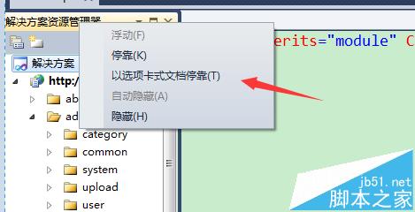 今天安装了VS2010 ,发现资源管理器停靠在右边,这不符合我的习惯,虽然可以拖拽到左边,但只会浮动在那,会挡住主界面,现在教大家怎么让它停靠在左边,而且能自动隐藏。