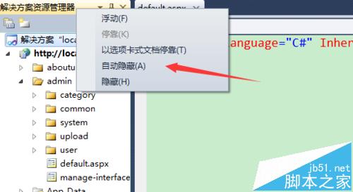 7、如果你想让视图能够自动隐藏,右键它,有个自动隐藏选项,选择后,不用此视图时就能够自动隐藏,鼠标停靠它才弹出,这样就相当于增加了代码视图的视觉空间,很方便。
