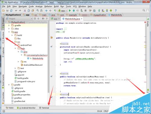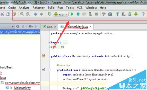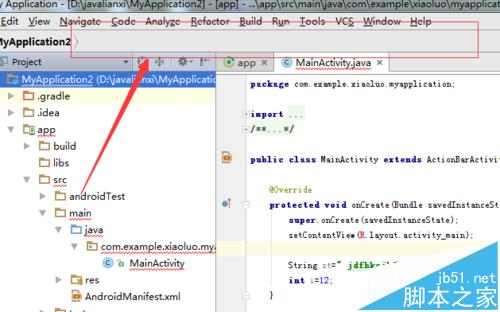 1、可以看到的是当前的android studio的窗口的菜单栏中显示了很多辅助的工具是可以使用的。