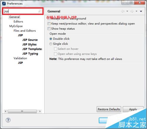2、在打开窗口的左端顶部的输入框中输入“jsp”,如下图: