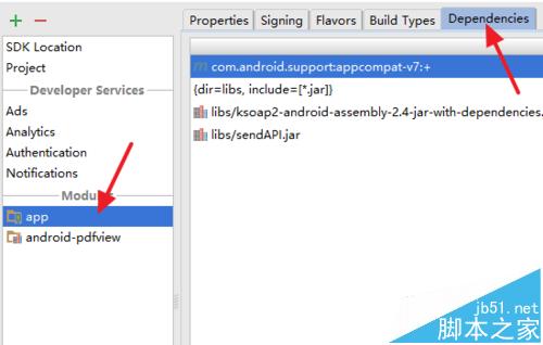 2、在窗口左侧选择原始的项目后,点击右侧的Dependencies(依赖项)。可以看到项目当前引用的jar包等信息。