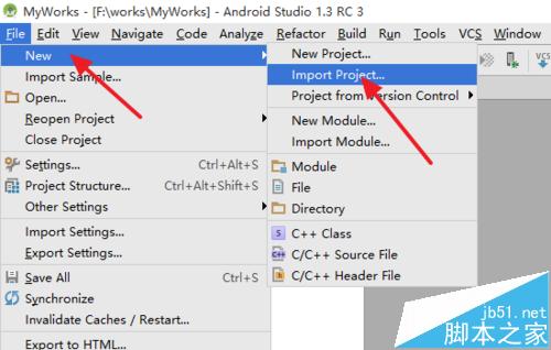 2、在下拉菜单中依次找到New— —Import Module,点击打开项目导入窗口。注意导入的是Module而不是Project,如果是Project的话AndroidStudio会自动打开一个新的窗口编辑,那样的话就是不Library了。