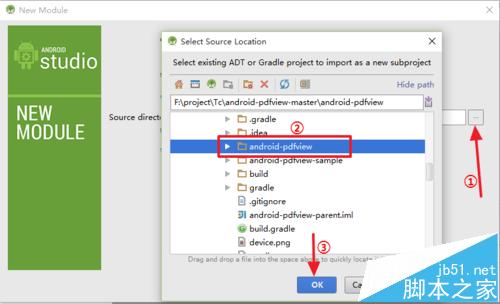 3、在打开的窗口中点击右侧的"..."浏览窗口,在文件夹窗口中找到你要导入的Library项目的位置,选择后点击底部的OK按钮导入。