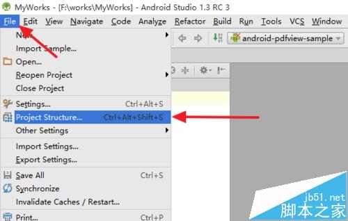 1、点击顶部左上角的File菜单,在出现的下拉菜单中找到Project Structure,点击进入。