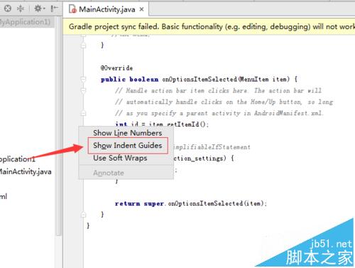 在进行使用的Android studio提供开发界面以比eclipse非常的好用的多了,而在进行使用编辑器的过程中,那么在进行对代码中缩进提供较好功能,能通过线方式来代表是否缩进,显示也较为明显,效果也更佳。