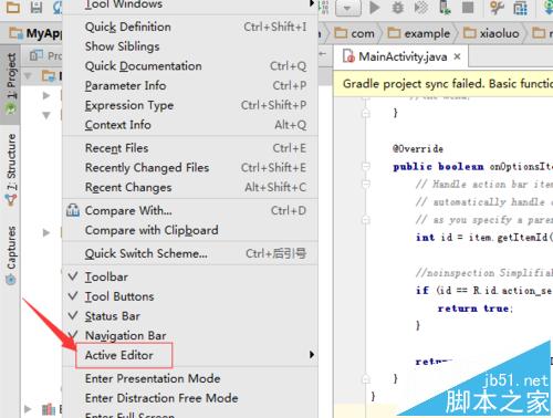 2、弹出了下拉菜单中进行选择为“active editor”的选项。