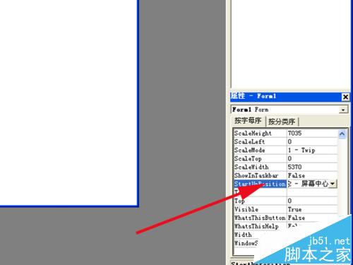 2、选择窗体,找到右边的属性窗口,设置boderstyle属性为0-none,设置startupposition属性为屏幕中心。