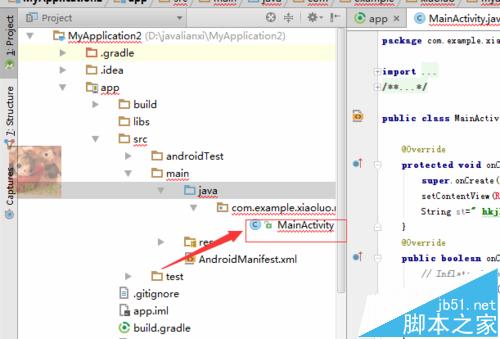 5、这样就会弹出了一个为activity的Java类的文件名,并在弹出了的会显示的文件的结构的列表中,进行选中的一个类的文件。