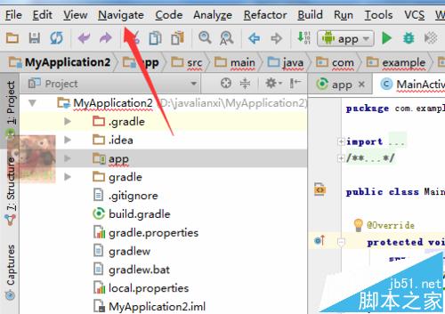 3、然后进行点击Android studio菜单中的“navigate”的选项菜单。
