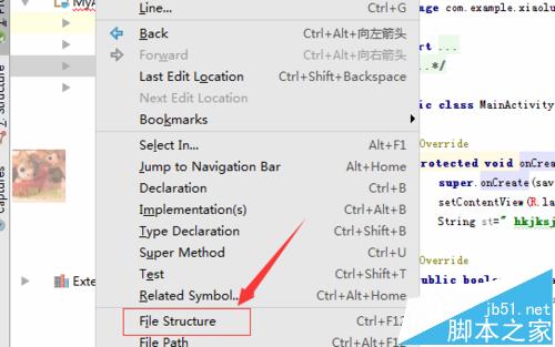 4、然后就会弹出了下拉菜单中进行选择为“file structure”的选项菜单。
