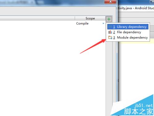 4、弹出的下拉的菜单中进行选择”Module dependency“。