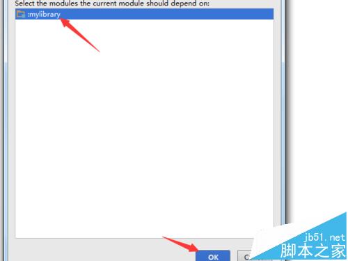 5、可以看到module的中自己创建library包,选中mylibrary,然后点击“OK”。