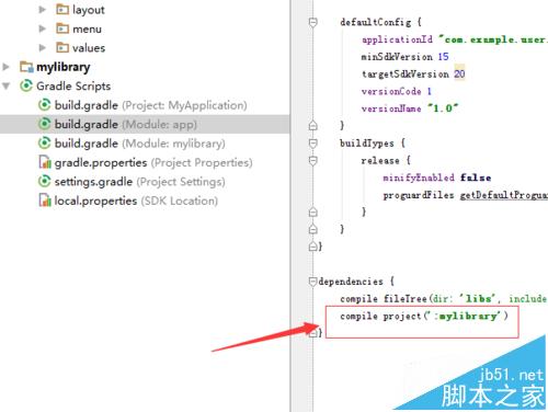 7、返回到Android studio的开发的界面中,选中gradle scripts的build.gradle之后,在build. gradle添加相应的依赖代码。