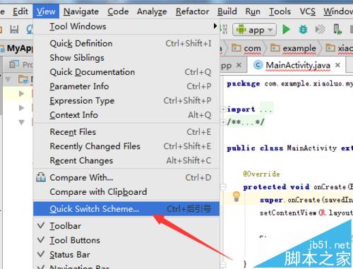 2、这样就会弹出了下拉菜单中,进行选择下拉菜单中的“quick switch scheme”的选项。