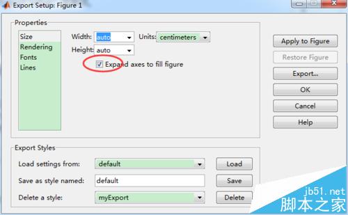 弹出的Export Setup对话框中进行相应的配置,首先进行导出图片大小的设置,包括长度单位,高和宽,这里一定记得点上“Expand axis to fill figure”以便导出的图像不含空白边框。