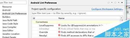 2、选择android lint preferences,点击configure workspace setting