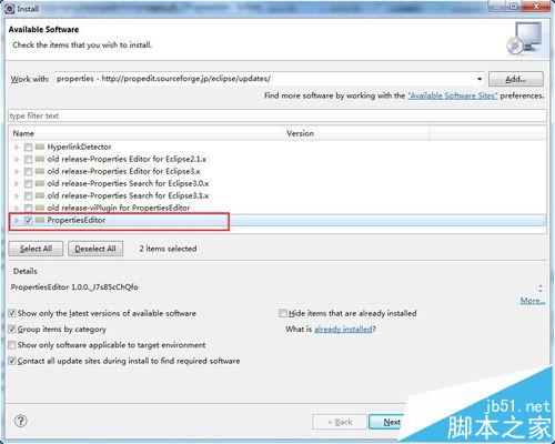 4、稍等两分钟,就会出现插件列表,选择PropertiesEditor,然后Next.