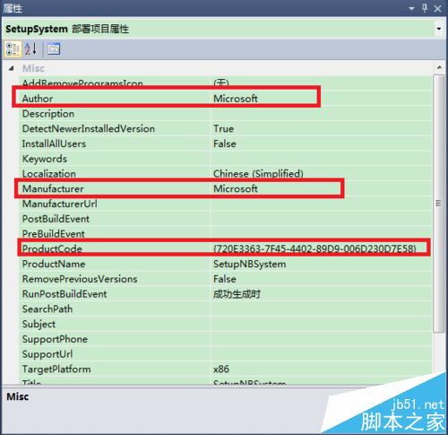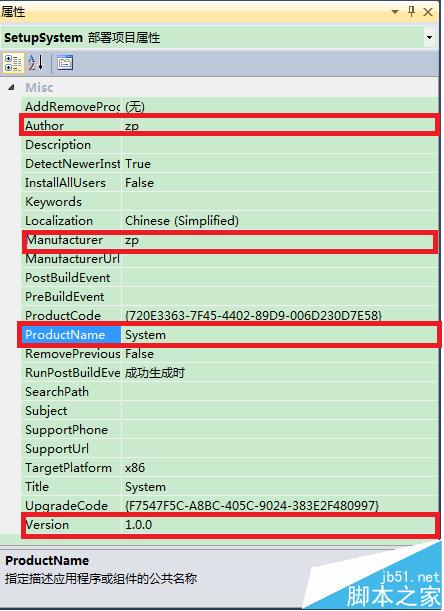 选中安装项目工程,在它的属性栏中设置一些参数。