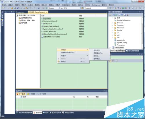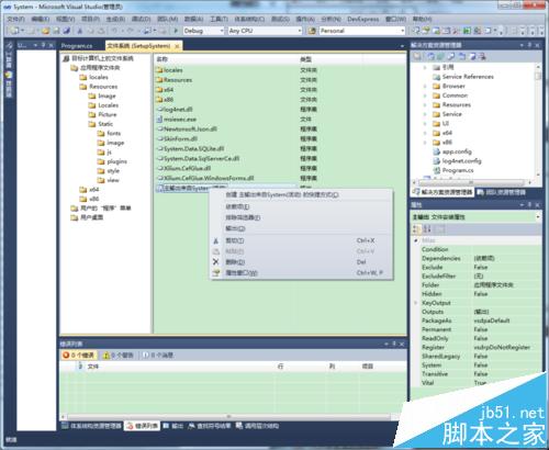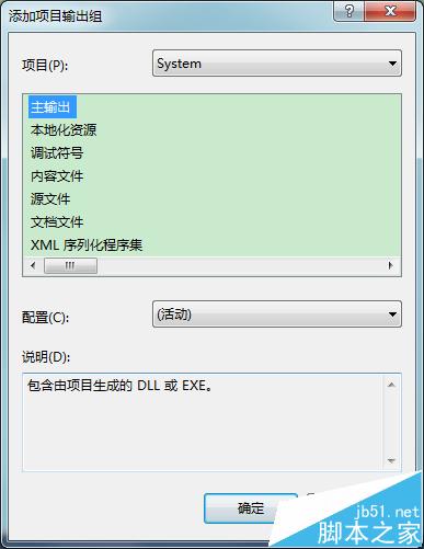 2、选中主输出,点击确定。VS自动导入程序的exe文件和程序依赖的DLL文件,如下图所示: