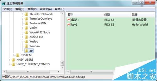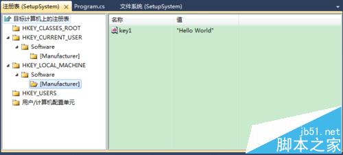 按照以上步骤,就可以为安装程序添加一个注册表项。在程序安装成功后,查看注册表,可以看到到我们写入的键值,如下图所示: