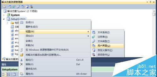 1、打开用户界面视图。选中安装项目,打开右键菜单,点击 视图 -> 用户界面,如下图所示:
