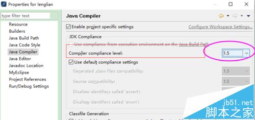 2、在属性框里,点击java compiler