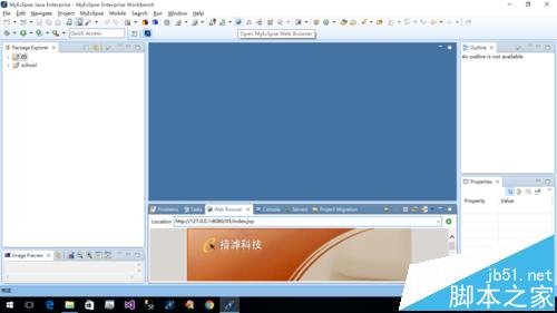 5、在工具栏中点击open myeclipse web Browser,在出现的窗口中输入地址:http://127.0.0.1:8080/项目名/index.jsp