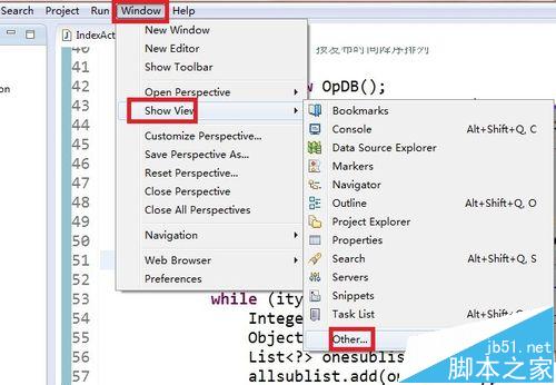 2、打开Eclipse,找到“Window”--“Show View”--“Other...”