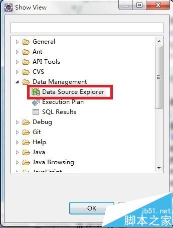 3、在弹出的新窗口中,打开文件夹“Data Management”找到“Data Source Explorer”,并单击“OK”。