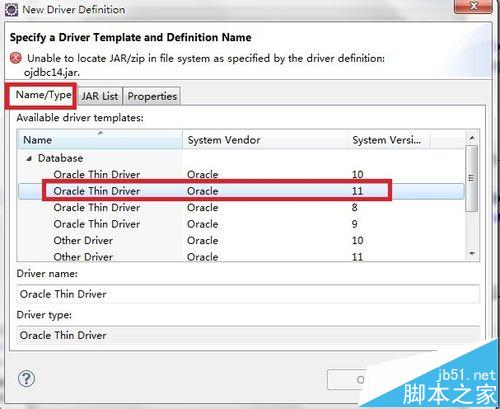 7、紧接上步,在新的对话框中,找到你所使用的oracle版本,建议选用Oracle Thin Driver,灵活,方便。