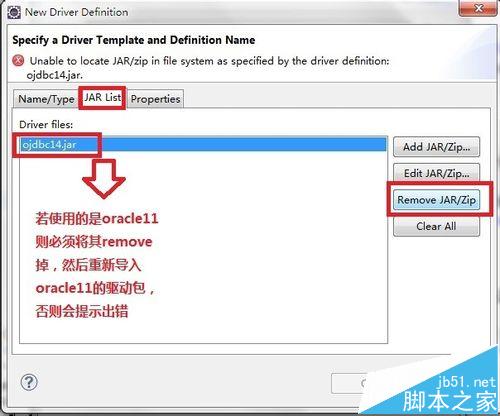 8、找到JAR List,若大家使用的是oracle11,请将其中的ojdbc14给remove掉,否则,Eclipse会不停提示出错。