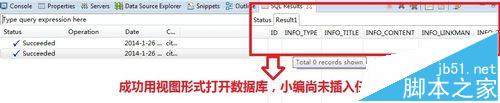 13、出现新的标签栏SQL Results,里面显示的就是数据库中所存的表的信息,小编在该表中暂未插入任何数据。至此,Eclipse和oracle的连接,以及显示数据库中表的内容就都完成了。接着就可以进行后面的开发工作了。