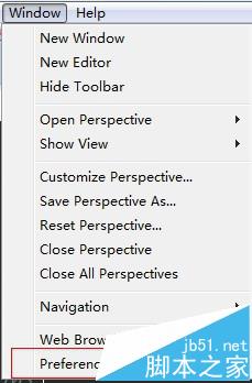 1、首先打开Eclipse,点击Window>>Preferences