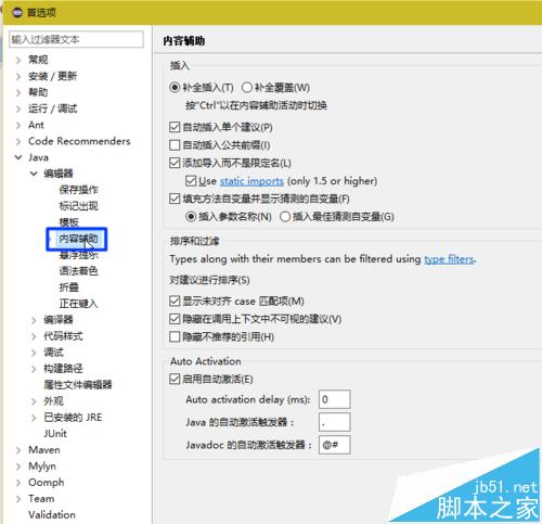 2、然后,选择Java->编译器->内容辅助,如下图: