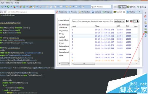 2、这个时候你就会看到你要的logcat了,如图所示。