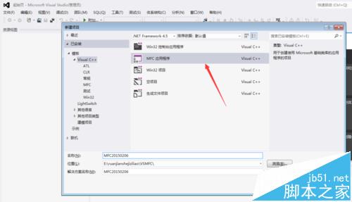 1、首先,点击VS2012,启动VS软件,然后建立如下图所示的应用程序,在图的下面输入项目名