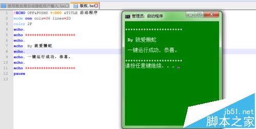 6、notepad++写好代码之后,点击运行菜单,选中bat。或者直接按ctrl+4组合键快速运行批处理。