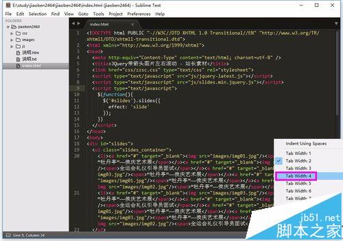 每次用sublime text3编辑文件,看到整篇代码只有两个空格的缩进就感觉代码很拥挤,于是就想着怎么去调整tab缩进为四个空格,下面小编简单介绍下调整tab缩进的方法: