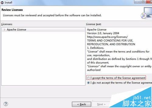 6、然后到了review licenses的选项界面中,需要同意license,选中完成之后,点击finish。
