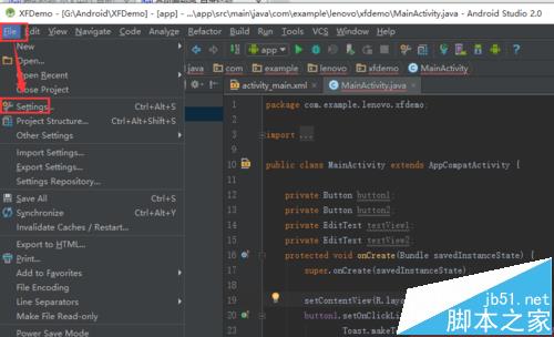 2、选择File 下 的settings