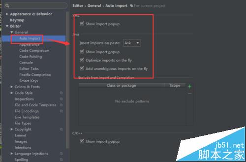 5、选择auto import ,然后将右侧的选项都打满钩