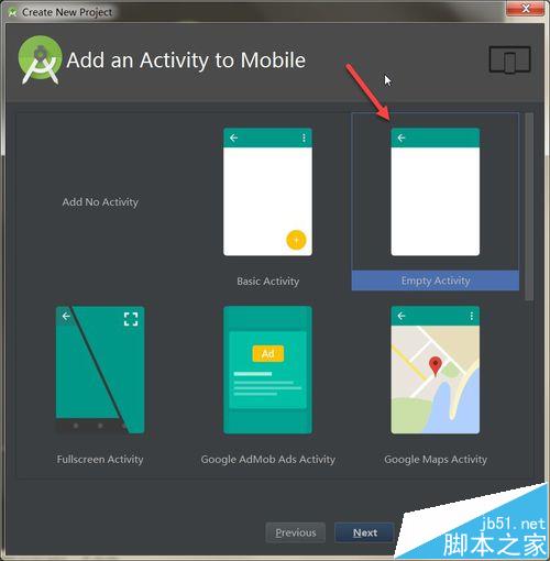 5、继续点击Next按钮进行下一步,我们需要通过形象友好的GUI模板,来选择我们第一个Activity的样式,如下图所示: