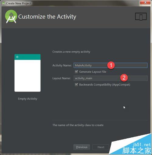 6、然后需要给Activity和Layout起一个名字,如下图所示:
