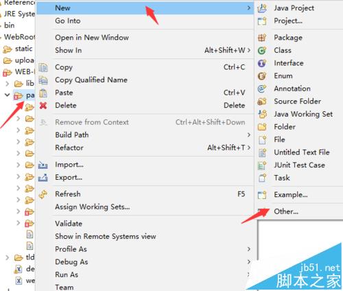 现在做JavaWeb研发常用的工具有myEclipse、Eclipse、IDEA等等,由于myEclipse消耗的内存较大,我一般用的是Eclipse。在Eclipse工作空间某个项目上点击存放页面的文件夹右键-》new-》other(由于Eclipse默认不是用来做WEB研发的,所有JSP在other里面)。