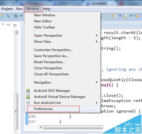 1、点击菜单栏的“Window”->“Preferences”,打开“Preferences”对话框。