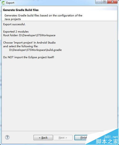 3、点击finish,第一次导入不会报什么错误,第二次导入的时候会报一个异常,大体就是你选择的文件已经生成了gradle文件,所以你要选择下面的一个复选框就是强制再生成一次,就可以了,如下图所示: